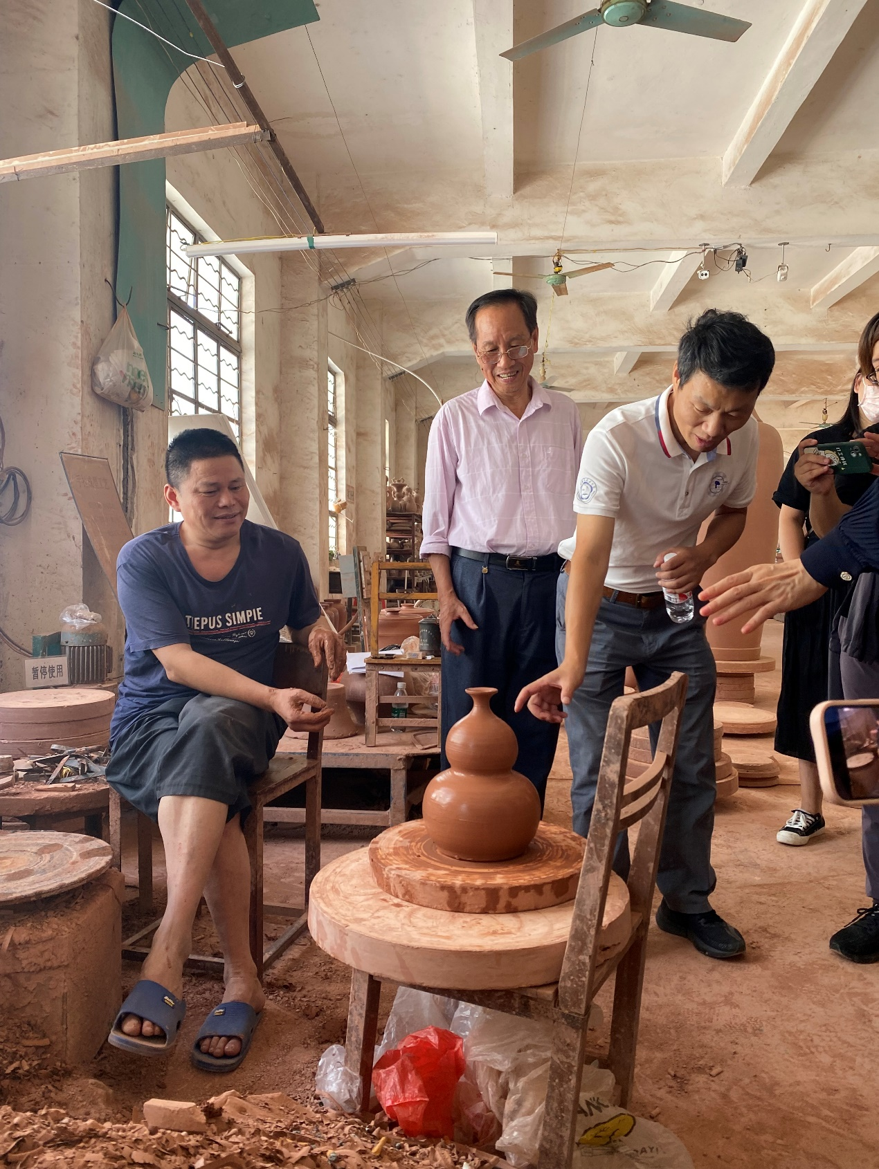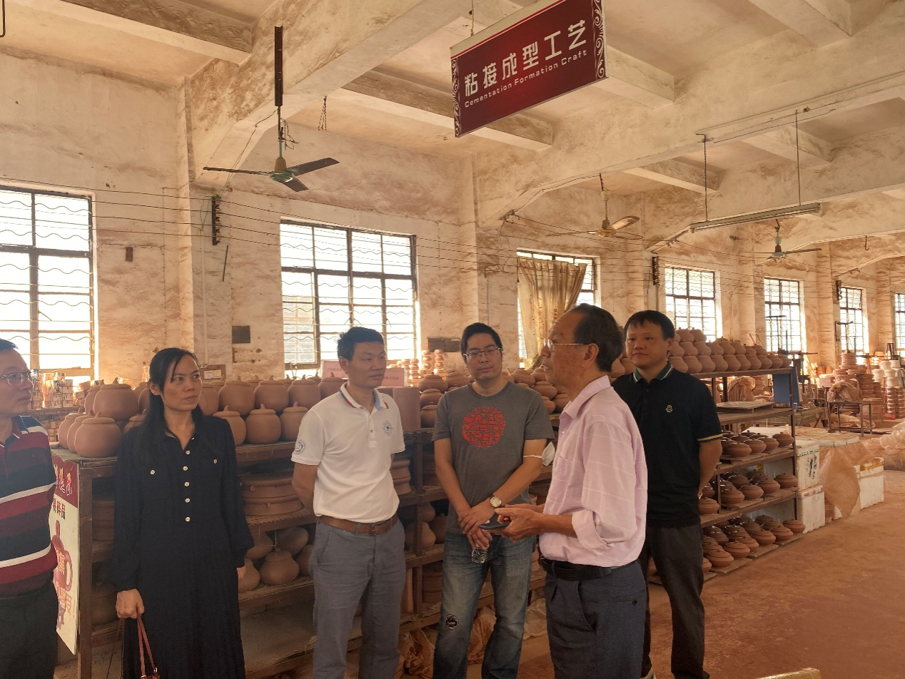 随后在坭兴陶国家级非遗代表性传承人李人帡、公司经理的罗礼烈的带领下,调研钦州市园博园区内的钦州坭兴陶博物馆、钦州古龙窑、水东缸瓦窑村遗址,走访公司车间,对坭兴陶烧制技法进行了详细了解。