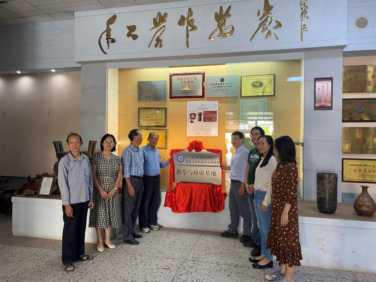 10月15日,FUN88乐天使在线登录,乐天使fun88登录入口教学与科研基地在广西钦州坭兴陶艺有限公司挂牌成立。广西钦州坭兴陶艺有限公司经理罗礼烈、坭兴陶国家级非遗代表性传承人李人帡、钦州市博物馆原馆长李世川,北部湾大学容州教授及乐天使fun88登录入口副院长汪常明教授,副院长邓环副教授,副研究馆员李大伟出席授牌仪式。广西钦州坭兴陶艺公司相关人员及乐天使fun88登录入口部分教师参加授牌仪式。
