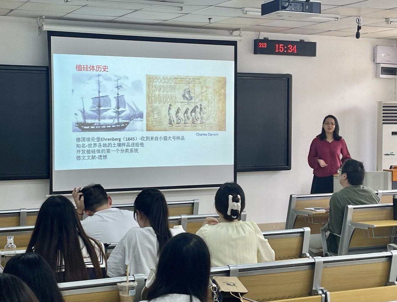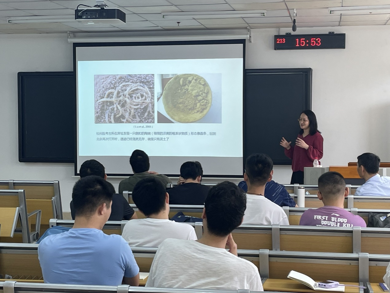 2023年3月21日下午,中国科学院古脊椎动物与古人类研究所青年研究员、博士生导师吴妍受研究院邀请在国际教育综合楼213室做了题为“植硅体:探秘考古世界的钥匙”的学术讲座。讲座由研究院副院长汪常明教授主持,科学技术史专业和文物与博物馆专业师生到场参加。