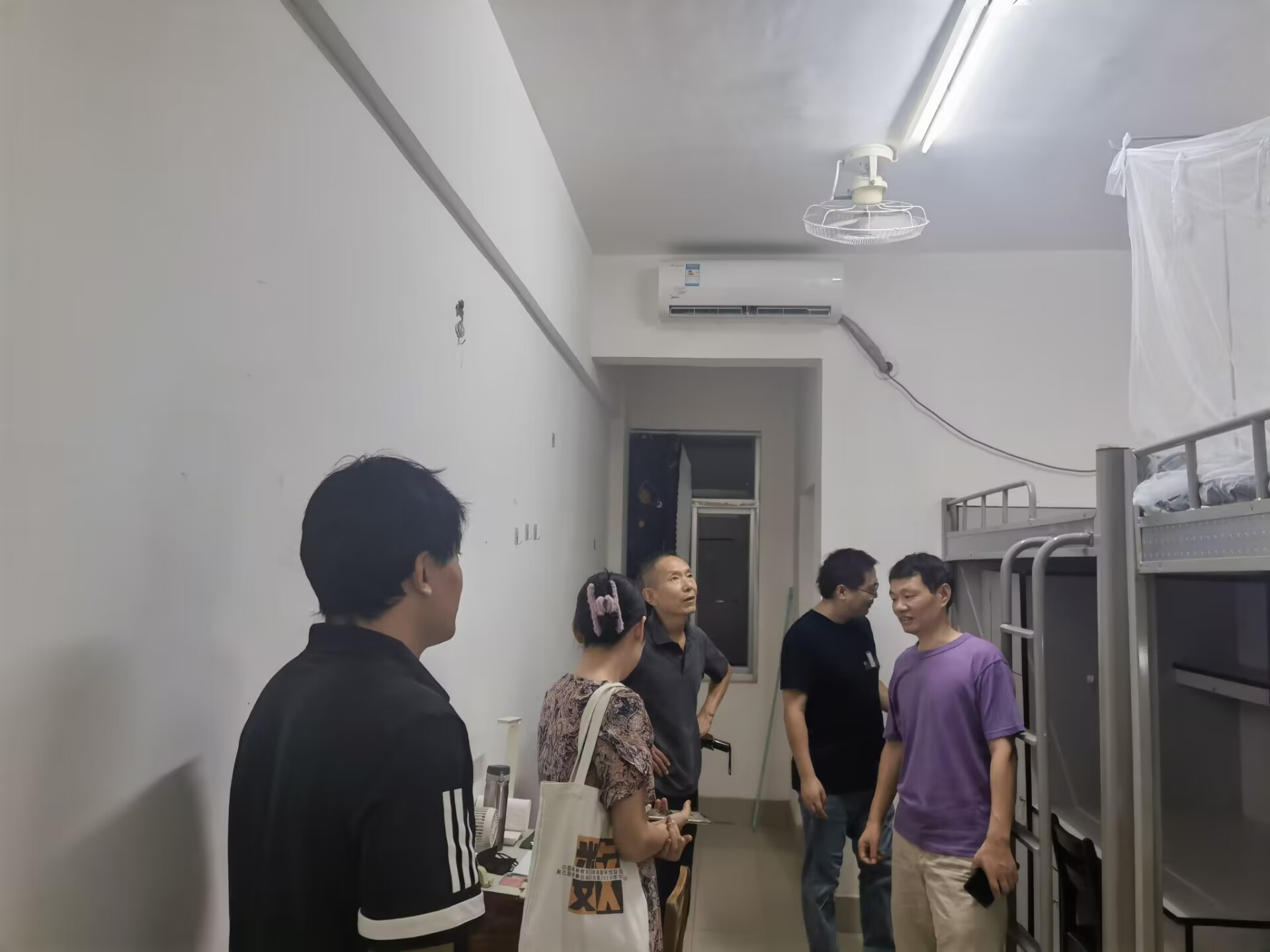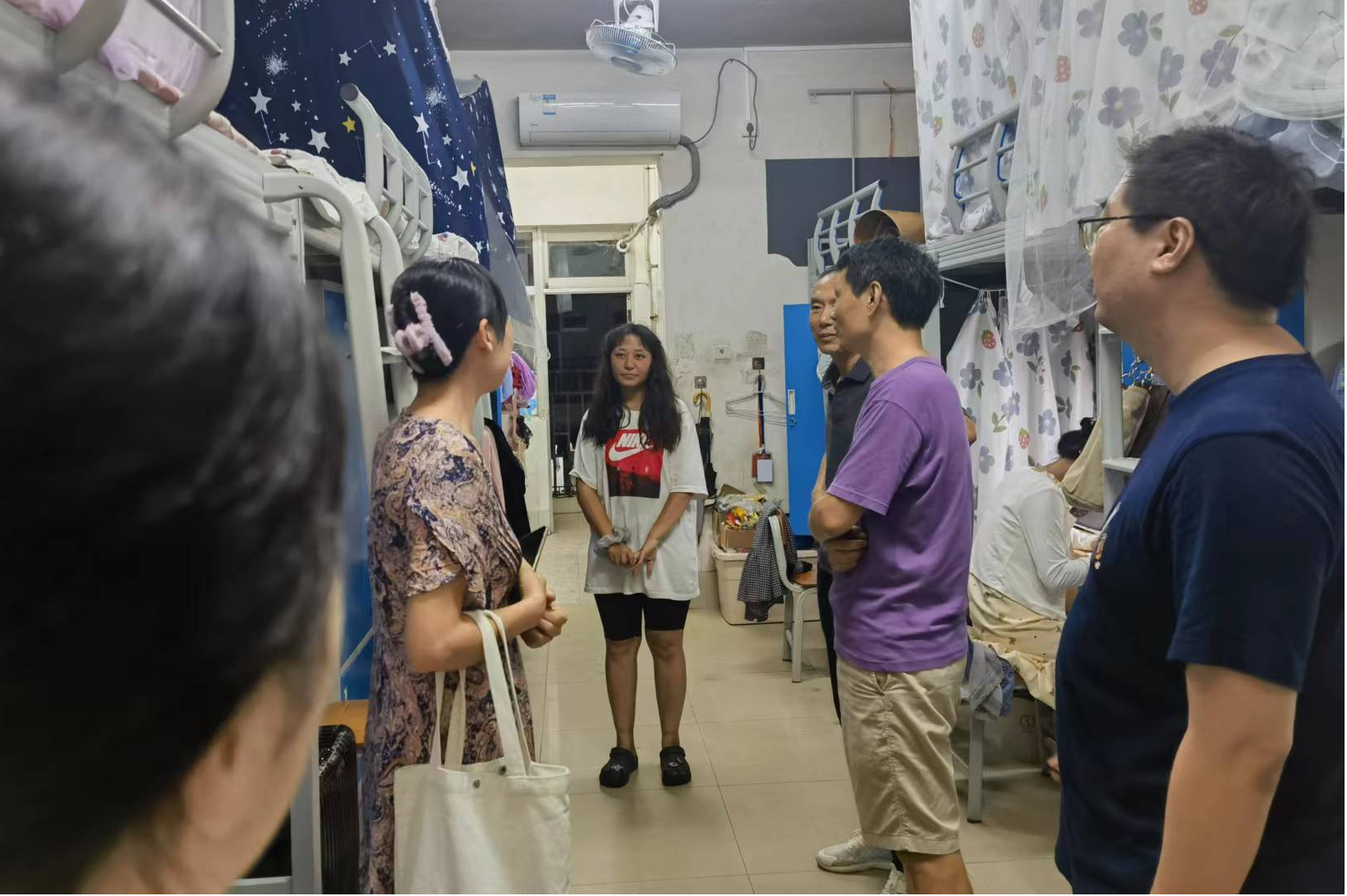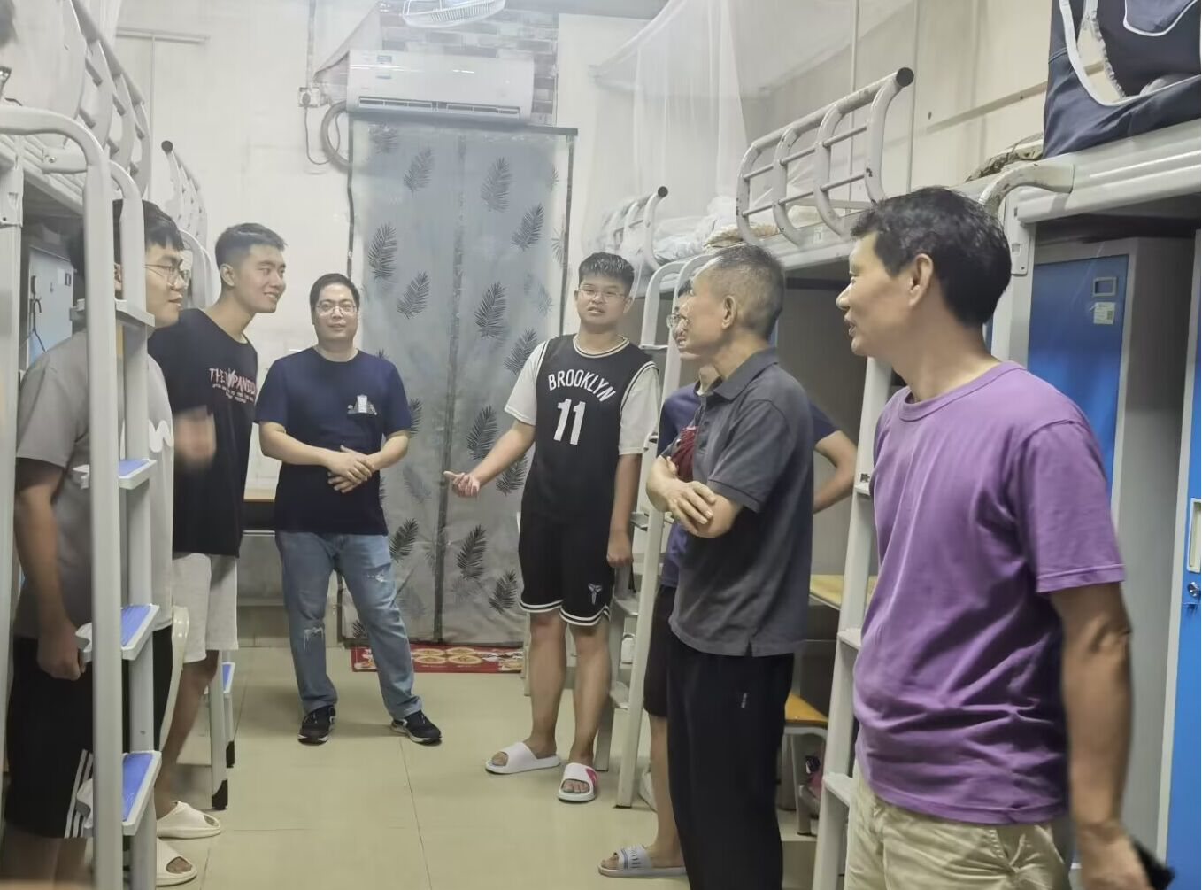 2023年9月10日晚上,为了解乐天使fun88登录入口学生住宿和生活情况,引领新生尽快适应新生活新环境,科技史与科技文化研究院院长吴致远、副院长汪常明、邓环和李大伟带领班主任曲安弈走访研究生宿舍,关心慰问刚入学的新生,深入了解新生思想、学习、生活、安全、卫生等情况。