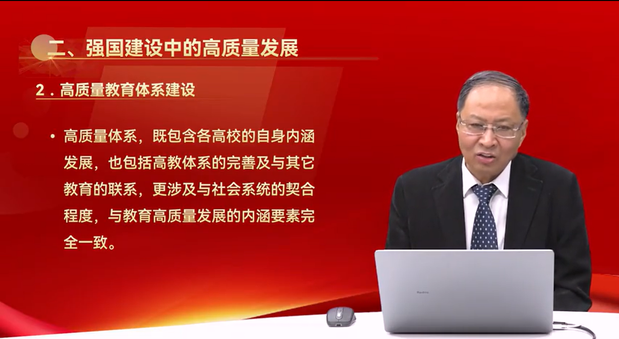 马老师进一步深入探讨了教育高质量发展和高质量教育体系建设的重要意义。他强调,教育具有不可替代的社会组织功能,教育强国建设不仅是国家发展的战略需求,更是支撑民族复兴、国家强盛和人民幸福的重要基石。从个人成长到创新过程,从新质生产力到职普融通、科教融汇、产教融合,马陆亭进行了系统分析,阐述了教育在其中的关键作用和内在逻辑。