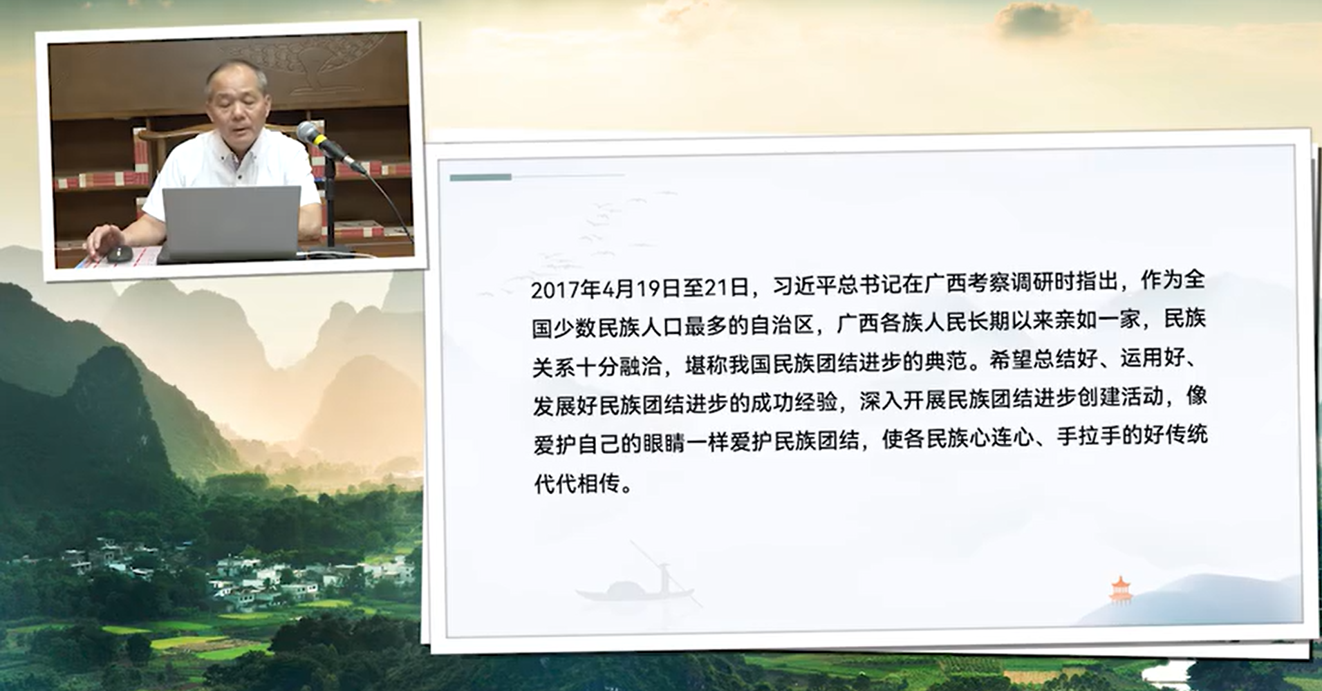 讲座伊始,李富强教授即以深刻的问题意识切入主题:“广西何以成为民族团结进步的典范?其成功的核心密码是什么?”他结合自身深厚的理论素养和长期深入一线的调研实践,从历史纵深、文化根基、制度保障、发展动力、社会融合等多个维度,对广西民族团结进步的“典范密码”进行了全方位、立体化的解读。