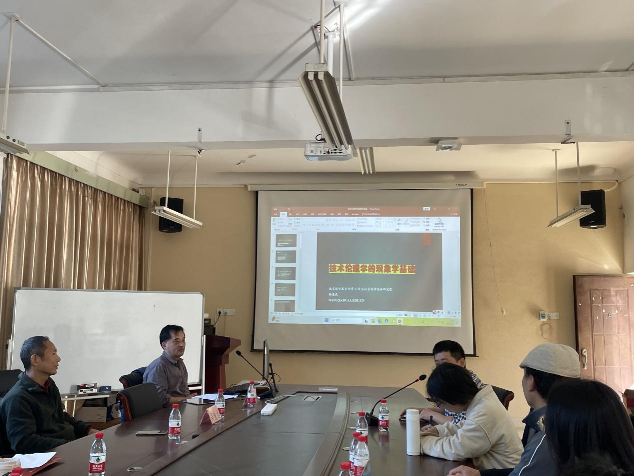 2023年12月7日下午,北京航空航天大学人文与社会科学高等研究院教授韩连庆受乐天使fun88登录入口邀请前来开展学术交流,在求是楼209会议室作题为“技术伦理学的现象学基础”的讲座,讲座由我研究院张东林老师主持。