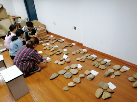广西民大研究生在科技考古实验室整理百都河流域遗址群石制品