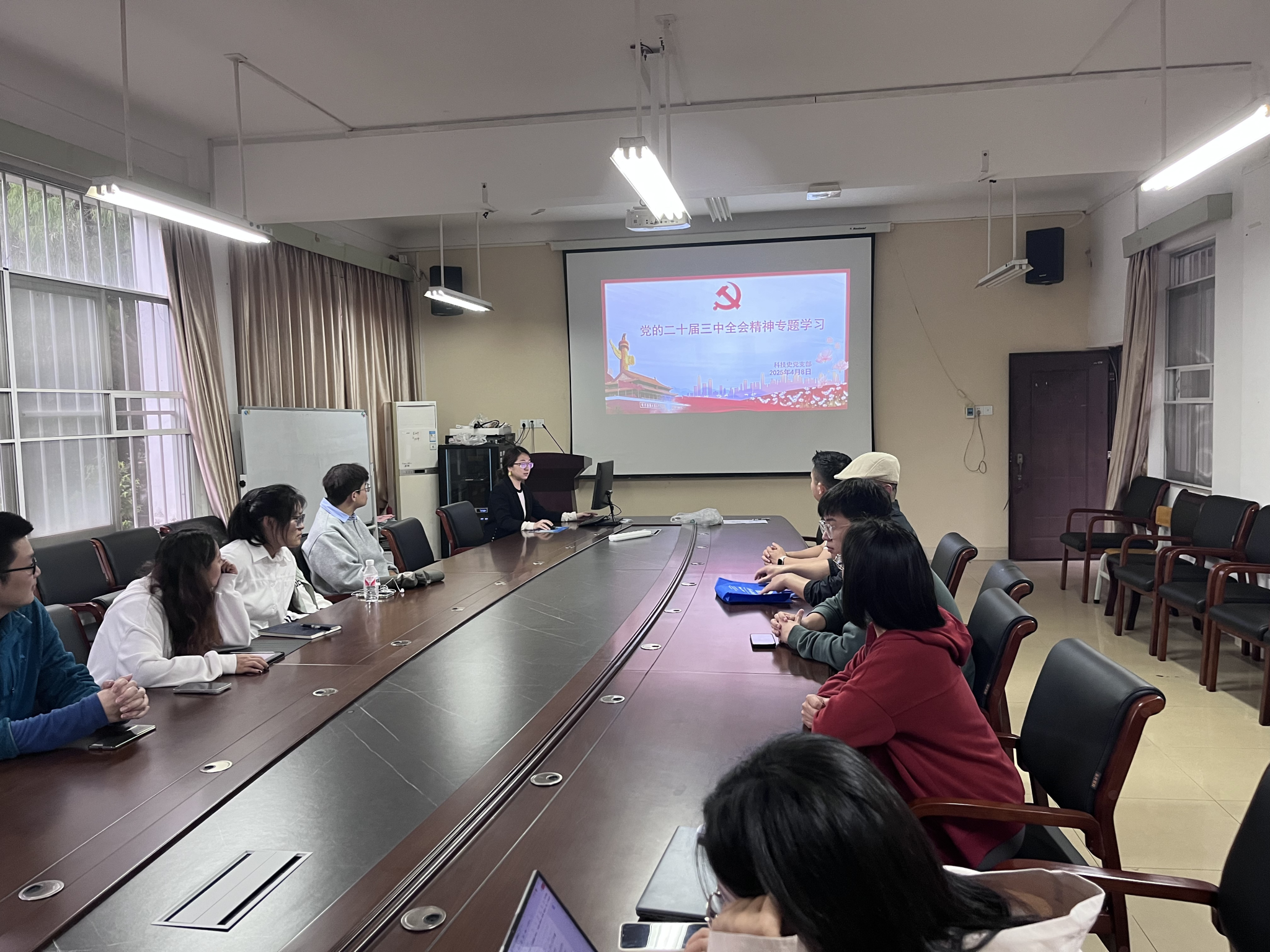 2025年4月8日下午,FUN88乐天使在线登录在求是楼209教室召开“学习贯彻党的二十届三中全会精神”活动,全体学生党员同志参加此次党课学习活动。