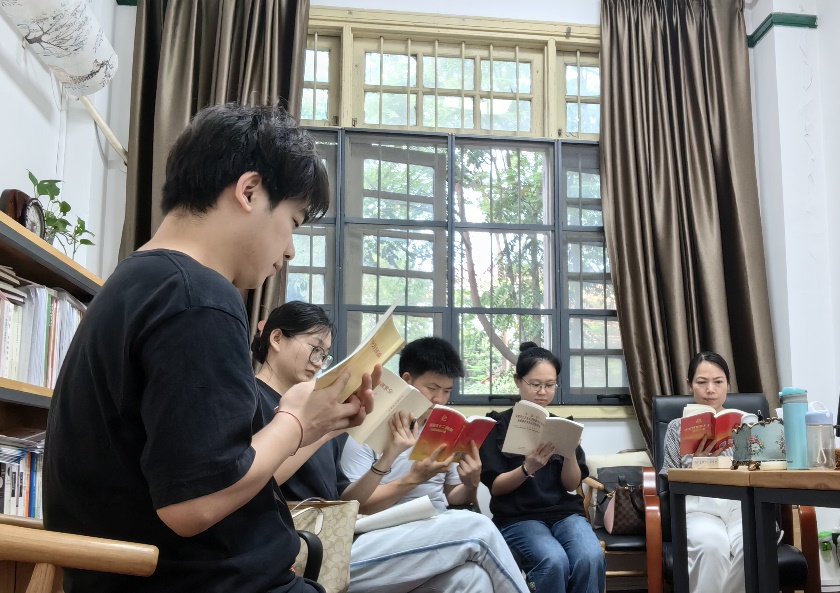 2023年5月21日下午5点,科技史与科技文化研究院党支部各支委在党支部书记邓环的带领下,于邑苑2-205室开展党的理论学习。会上,邓环书记和各位支委成员认真研读了党的二十大报告和党章,学习了《习近平著作选读》(一、二卷)、《习近平新时代中国特色社会主义思想专题摘编》以及《论党的自我革命》等内容。大家积极交流发言,分享学习心得体会,畅谈运用党的创新理论解决支部建设、教师教学以及学生学习等实际问题的具体案例,并提出日后各项工作的改进思路。最后,党支部书记邓环对本次理论学习进行总结,表示各位党员应坚持以学铸魂,强化理论武装,坚持党员带头示范学习,以支部为单位组织全体党员进行集中学习,以党内教育引导和带动全院师生学习,严格落实学校主题教育相关工作。